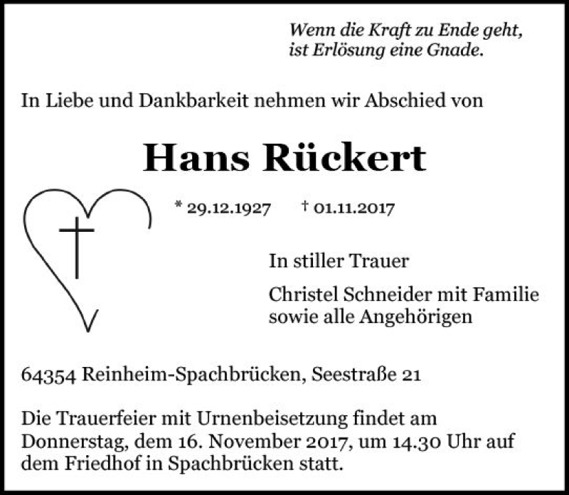 Hier finden Sie alle Traueranzeigen aus der Zeitung, die bisher für Johann Rückert erschienen sind. Weitere Traueranzeigen, die in der Zeitung erscheinen, werden hier ebenfalls aufgelistet