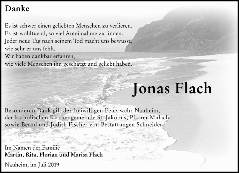 Hier finden Sie alle Traueranzeigen aus der Zeitung, die bisher für Jonas Flach erschienen sind. Weitere Traueranzeigen, die in der Zeitung erscheinen, werden hier ebenfalls aufgelistet