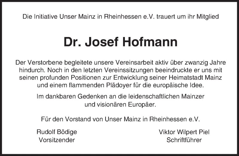 Hier finden Sie alle Traueranzeigen aus der Zeitung, die bisher für Josef Hofmann erschienen sind. Weitere Traueranzeigen, die in der Zeitung erscheinen, werden hier ebenfalls aufgelistet