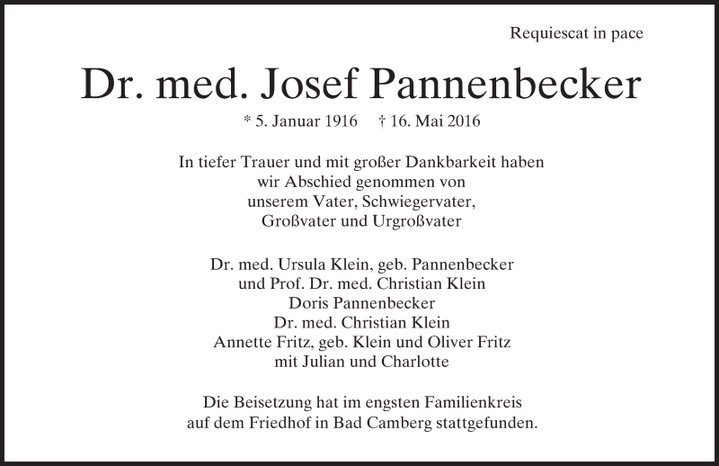 Hier finden Sie alle Traueranzeigen aus der Zeitung, die bisher für Josef Pannenbecker erschienen sind. Weitere Traueranzeigen, die in der Zeitung erscheinen, werden hier ebenfalls aufgelistet