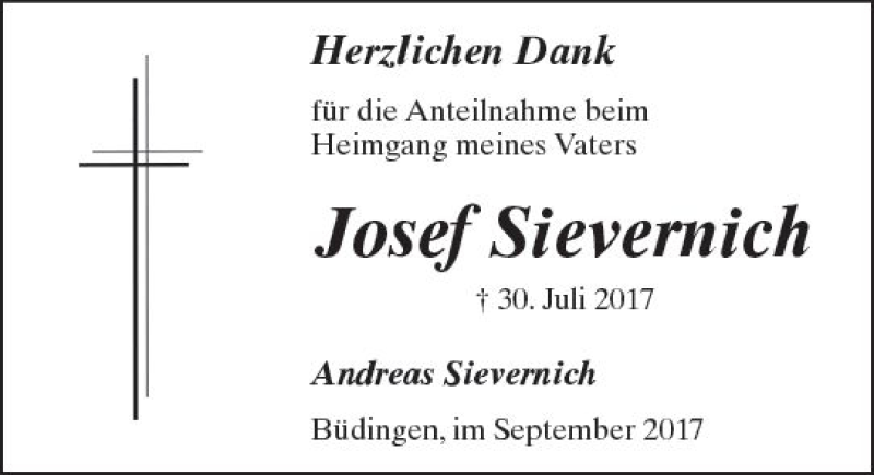 Hier finden Sie alle Traueranzeigen aus der Zeitung, die bisher für Josef Sievenlich erschienen sind. Weitere Traueranzeigen, die in der Zeitung erscheinen, werden hier ebenfalls aufgelistet