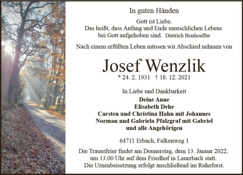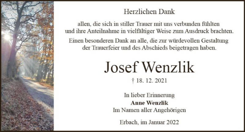 Hier finden Sie alle Traueranzeigen aus der Zeitung, die bisher für Josef Wenzlik erschienen sind. Weitere Traueranzeigen, die in der Zeitung erscheinen, werden hier ebenfalls aufgelistet