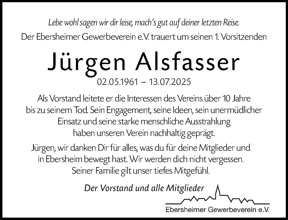 Hier finden Sie alle Traueranzeigen aus der Zeitung, die bisher für Jürgen Alsfasser erschienen sind. Weitere Traueranzeigen, die in der Zeitung erscheinen, werden hier ebenfalls aufgelistet