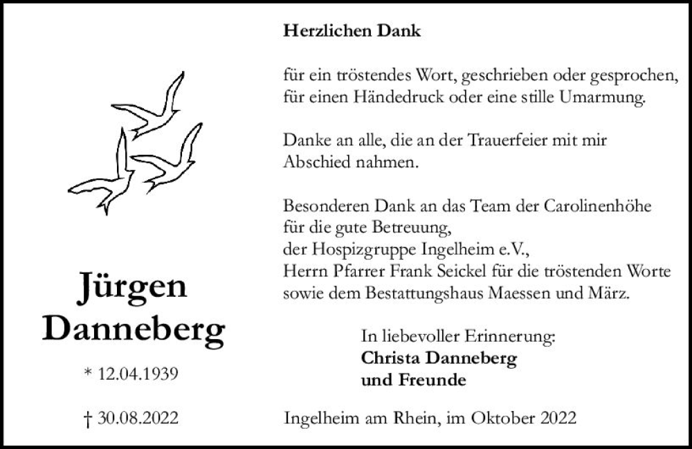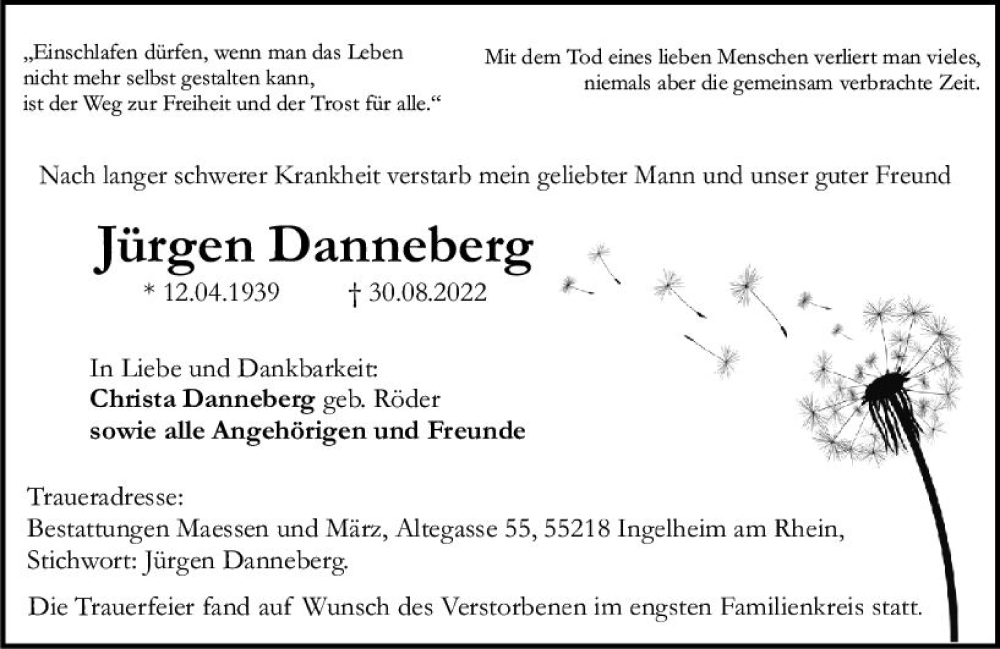 Hier finden Sie alle Traueranzeigen aus der Zeitung, die bisher für Jürgen Danneberg erschienen sind. Weitere Traueranzeigen, die in der Zeitung erscheinen, werden hier ebenfalls aufgelistet