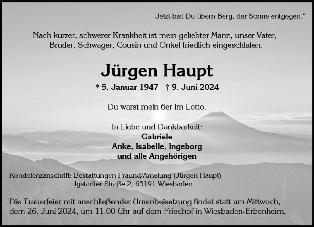 Hier finden Sie alle Traueranzeigen aus der Zeitung, die bisher für Jürgen Haupt erschienen sind. Weitere Traueranzeigen, die in der Zeitung erscheinen, werden hier ebenfalls aufgelistet