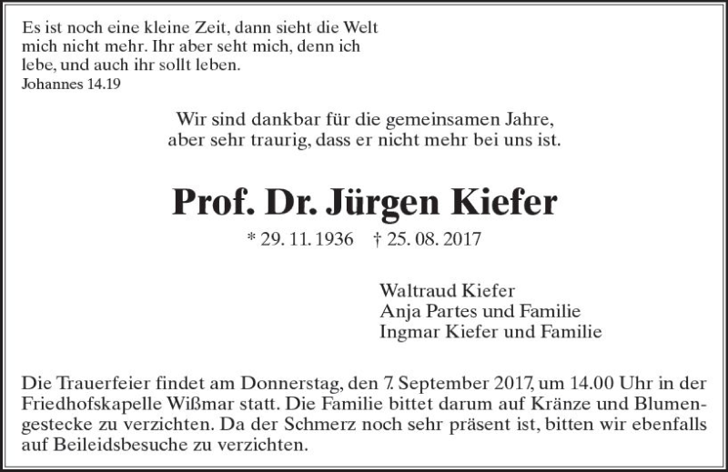 Hier finden Sie alle Traueranzeigen aus der Zeitung, die bisher für Jürgen Kiefer erschienen sind. Weitere Traueranzeigen, die in der Zeitung erscheinen, werden hier ebenfalls aufgelistet