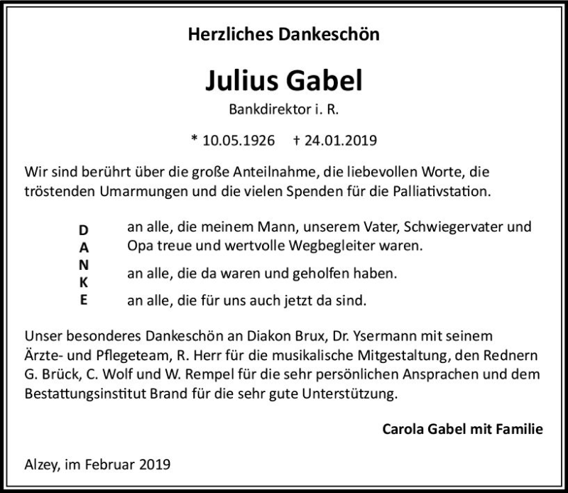 Hier finden Sie alle Traueranzeigen aus der Zeitung, die bisher für Julius Gabel erschienen sind. Weitere Traueranzeigen, die in der Zeitung erscheinen, werden hier ebenfalls aufgelistet