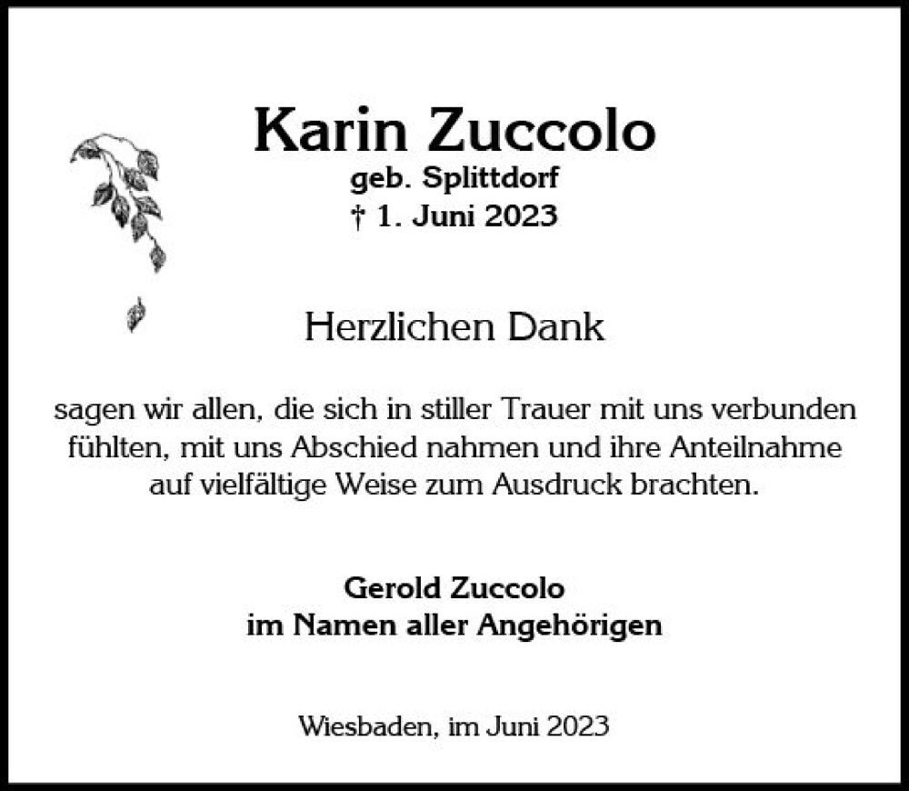 Hier finden Sie alle Traueranzeigen aus der Zeitung, die bisher für Karin Zuccolo erschienen sind. Weitere Traueranzeigen, die in der Zeitung erscheinen, werden hier ebenfalls aufgelistet