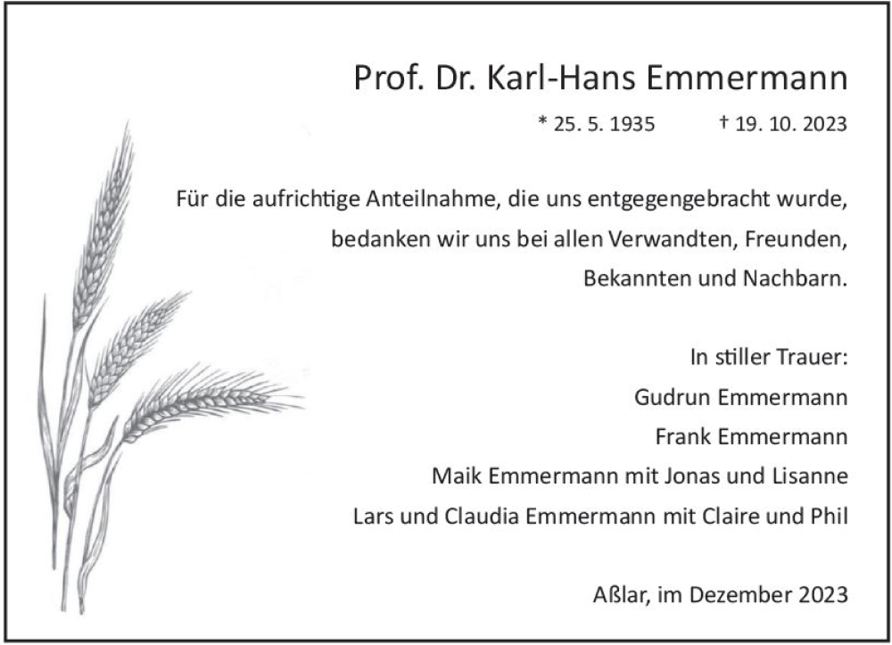 Hier finden Sie alle Traueranzeigen aus der Zeitung, die bisher für Karl-Hans Ernmermann erschienen sind. Weitere Traueranzeigen, die in der Zeitung erscheinen, werden hier ebenfalls aufgelistet
