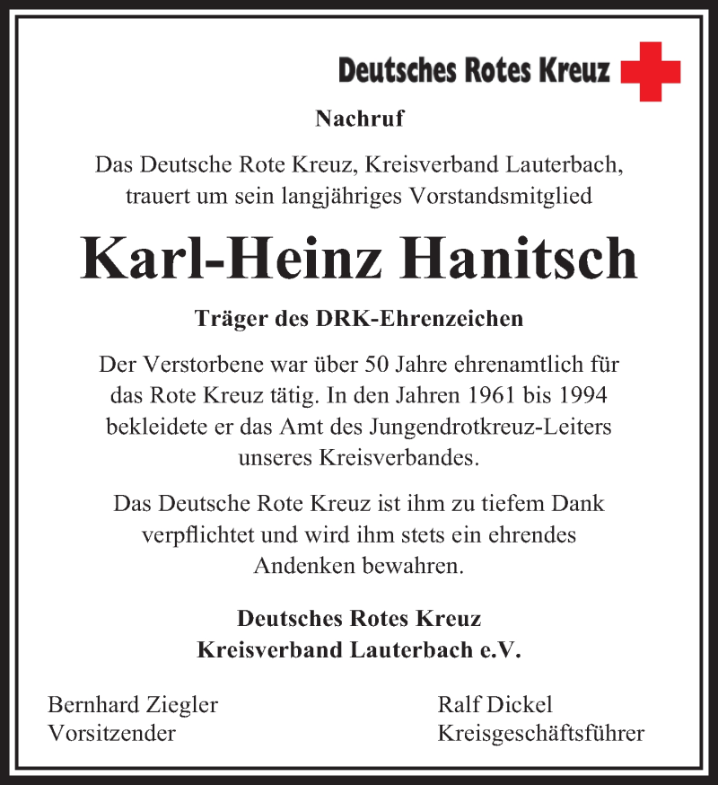 Hier finden Sie alle Traueranzeigen aus der Zeitung, die bisher für Karl-Heinz Hanitsch erschienen sind. Weitere Traueranzeigen, die in der Zeitung erscheinen, werden hier ebenfalls aufgelistet