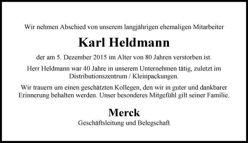 Hier finden Sie alle Traueranzeigen aus der Zeitung, die bisher für Karl Heldmann erschienen sind. Weitere Traueranzeigen, die in der Zeitung erscheinen, werden hier ebenfalls aufgelistet