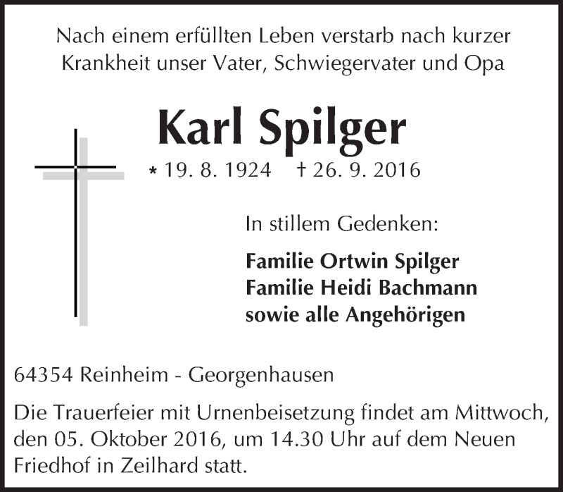 Hier finden Sie alle Traueranzeigen aus der Zeitung, die bisher für Karl Spilger erschienen sind. Weitere Traueranzeigen, die in der Zeitung erscheinen, werden hier ebenfalls aufgelistet