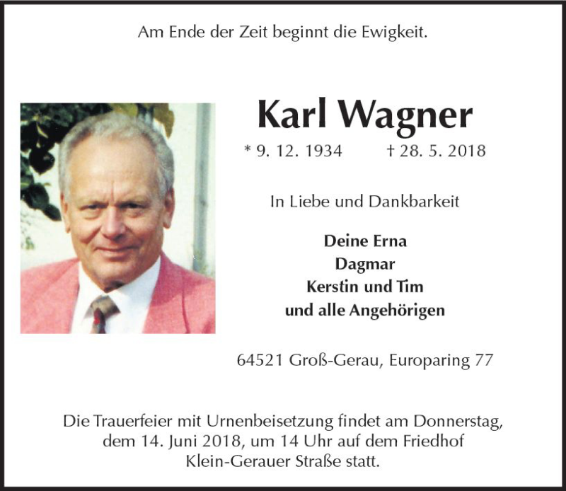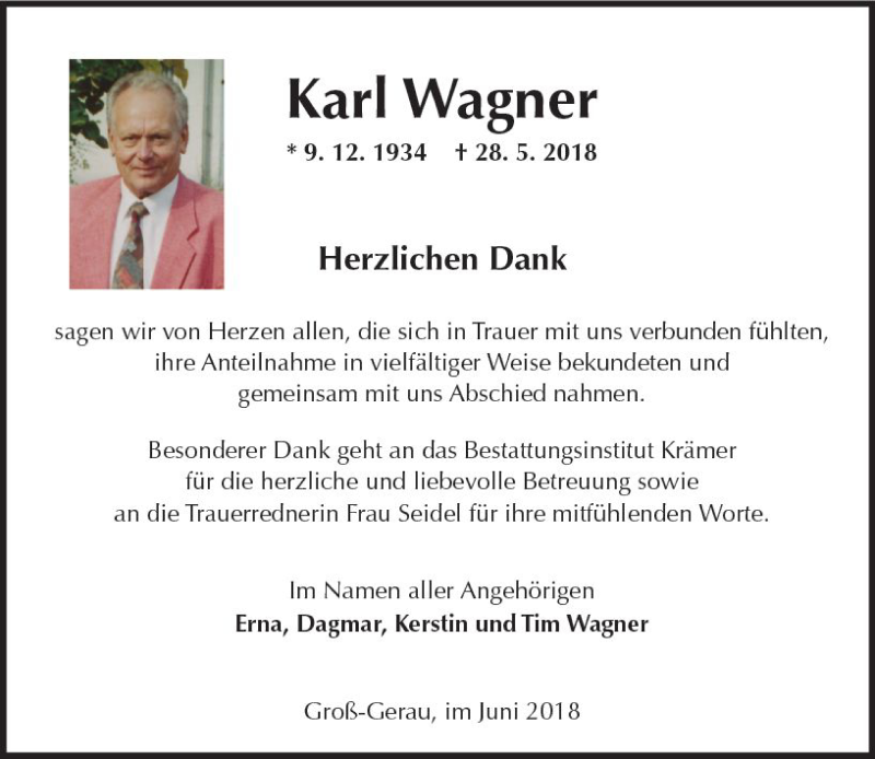 Hier finden Sie alle Traueranzeigen aus der Zeitung, die bisher für Karl Wagner erschienen sind. Weitere Traueranzeigen, die in der Zeitung erscheinen, werden hier ebenfalls aufgelistet