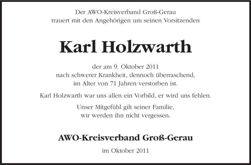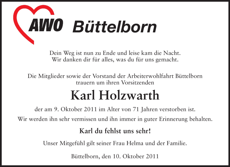 Hier finden Sie alle Traueranzeigen aus der Zeitung, die bisher für Karl A. Holzwarth erschienen sind. Weitere Traueranzeigen, die in der Zeitung erscheinen, werden hier ebenfalls aufgelistet