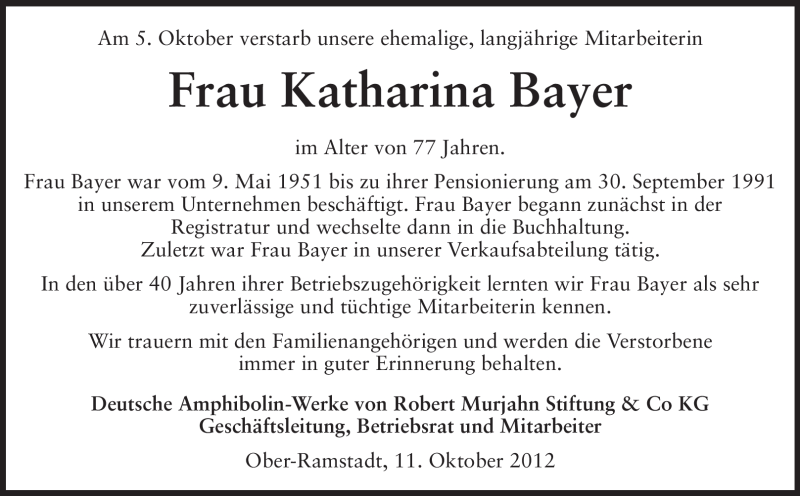Hier finden Sie alle Traueranzeigen aus der Zeitung, die bisher für Katharina Bayer erschienen sind. Weitere Traueranzeigen, die in der Zeitung erscheinen, werden hier ebenfalls aufgelistet