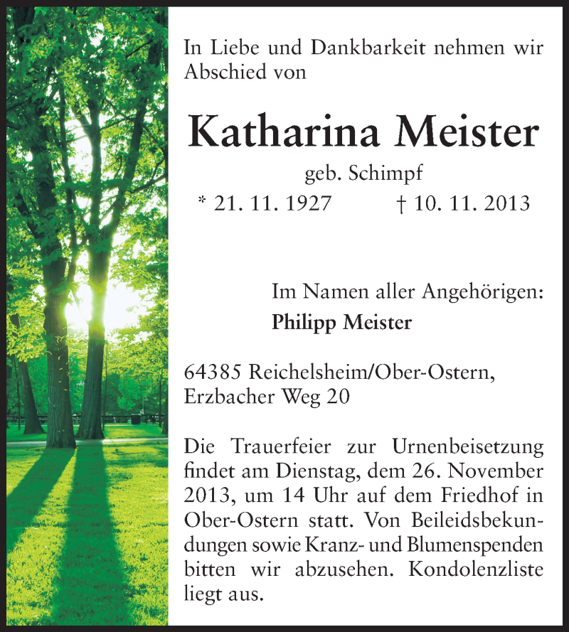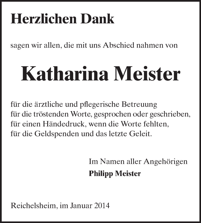 Hier finden Sie alle Traueranzeigen aus der Zeitung, die bisher für Katharina Meister erschienen sind. Weitere Traueranzeigen, die in der Zeitung erscheinen, werden hier ebenfalls aufgelistet