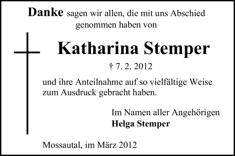 Hier finden Sie alle Traueranzeigen aus der Zeitung, die bisher für Katharina Stemper erschienen sind. Weitere Traueranzeigen, die in der Zeitung erscheinen, werden hier ebenfalls aufgelistet