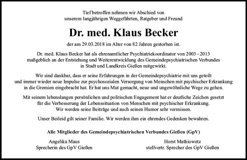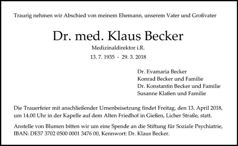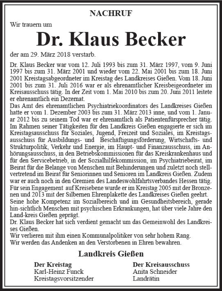 Hier finden Sie alle Traueranzeigen aus der Zeitung, die bisher für Klaus Becker erschienen sind. Weitere Traueranzeigen, die in der Zeitung erscheinen, werden hier ebenfalls aufgelistet