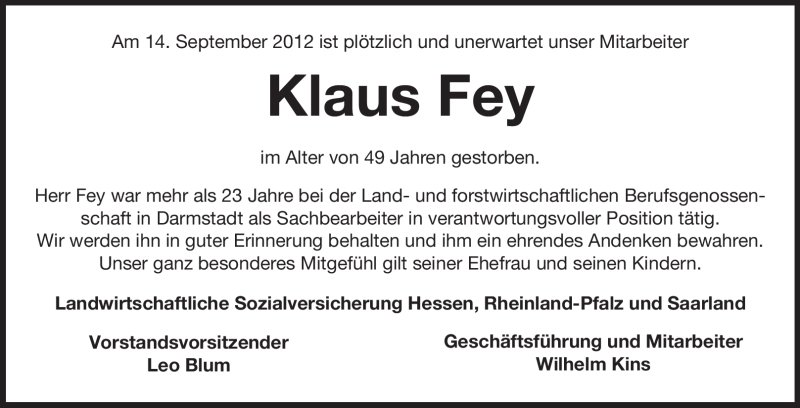 Hier finden Sie alle Traueranzeigen aus der Zeitung, die bisher für Klaus Fey erschienen sind. Weitere Traueranzeigen, die in der Zeitung erscheinen, werden hier ebenfalls aufgelistet