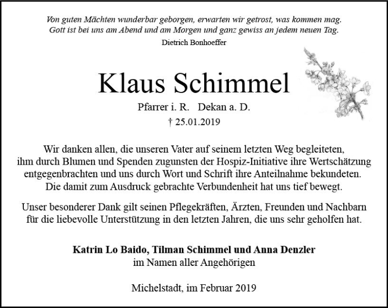 Hier finden Sie alle Traueranzeigen aus der Zeitung, die bisher für Klaus Schimmel erschienen sind. Weitere Traueranzeigen, die in der Zeitung erscheinen, werden hier ebenfalls aufgelistet