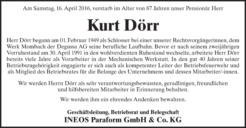 Hier finden Sie alle Traueranzeigen aus der Zeitung, die bisher für Kurt Dörr erschienen sind. Weitere Traueranzeigen, die in der Zeitung erscheinen, werden hier ebenfalls aufgelistet