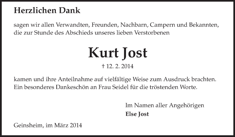 Hier finden Sie alle Traueranzeigen aus der Zeitung, die bisher für Kurt Jost erschienen sind. Weitere Traueranzeigen, die in der Zeitung erscheinen, werden hier ebenfalls aufgelistet