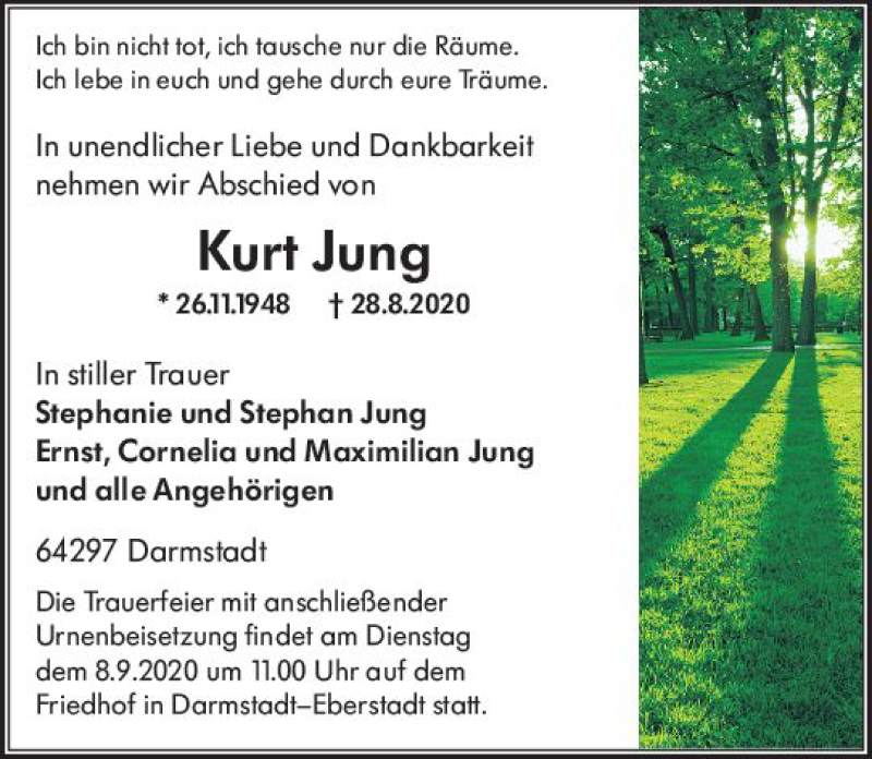 Hier finden Sie alle Traueranzeigen aus der Zeitung, die bisher für Kurt Jung erschienen sind. Weitere Traueranzeigen, die in der Zeitung erscheinen, werden hier ebenfalls aufgelistet