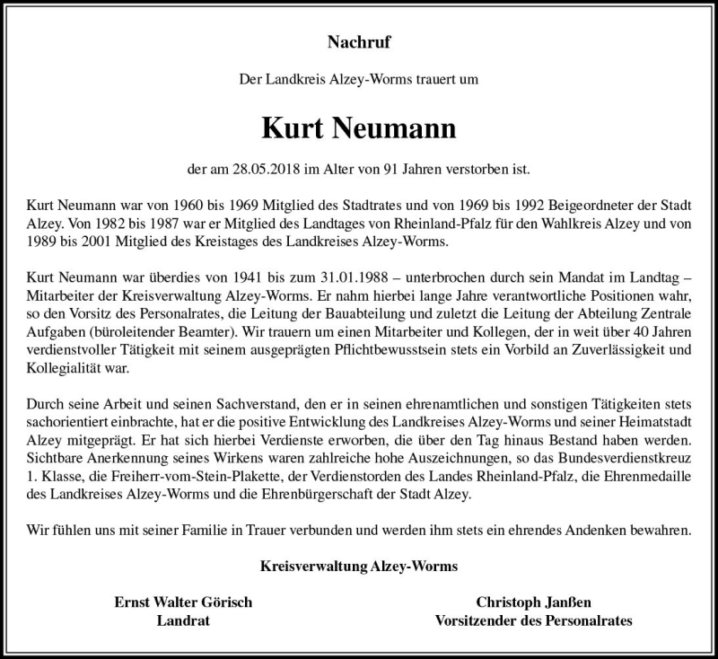 Hier finden Sie alle Traueranzeigen aus der Zeitung, die bisher für Kurt Neumann erschienen sind. Weitere Traueranzeigen, die in der Zeitung erscheinen, werden hier ebenfalls aufgelistet