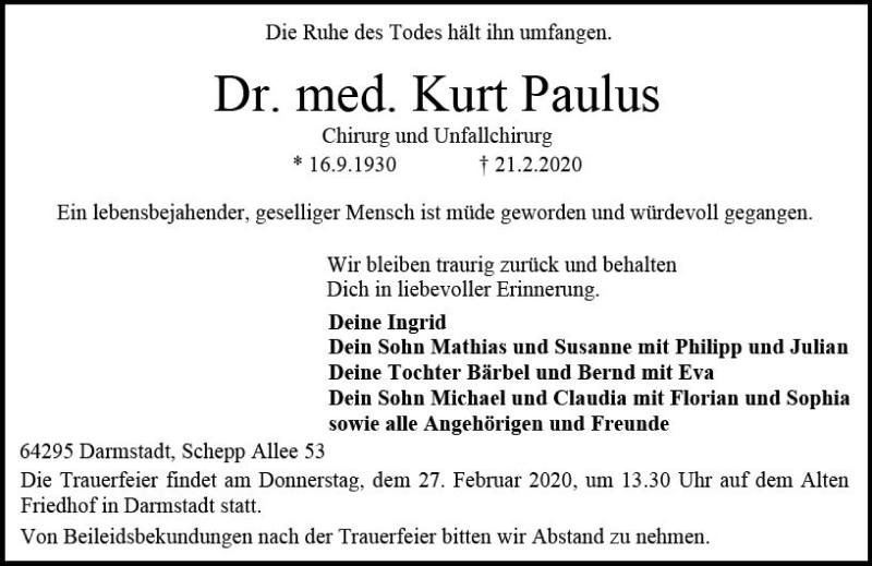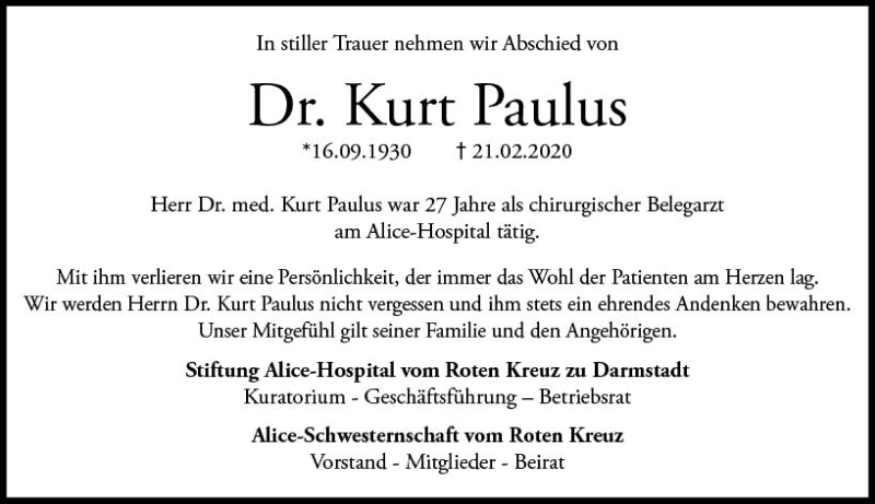 Hier finden Sie alle Traueranzeigen aus der Zeitung, die bisher für Kurt Paulus erschienen sind. Weitere Traueranzeigen, die in der Zeitung erscheinen, werden hier ebenfalls aufgelistet
