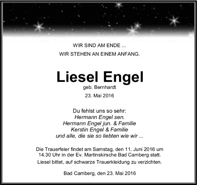 Hier finden Sie alle Traueranzeigen aus der Zeitung, die bisher für Liesel Engel erschienen sind. Weitere Traueranzeigen, die in der Zeitung erscheinen, werden hier ebenfalls aufgelistet