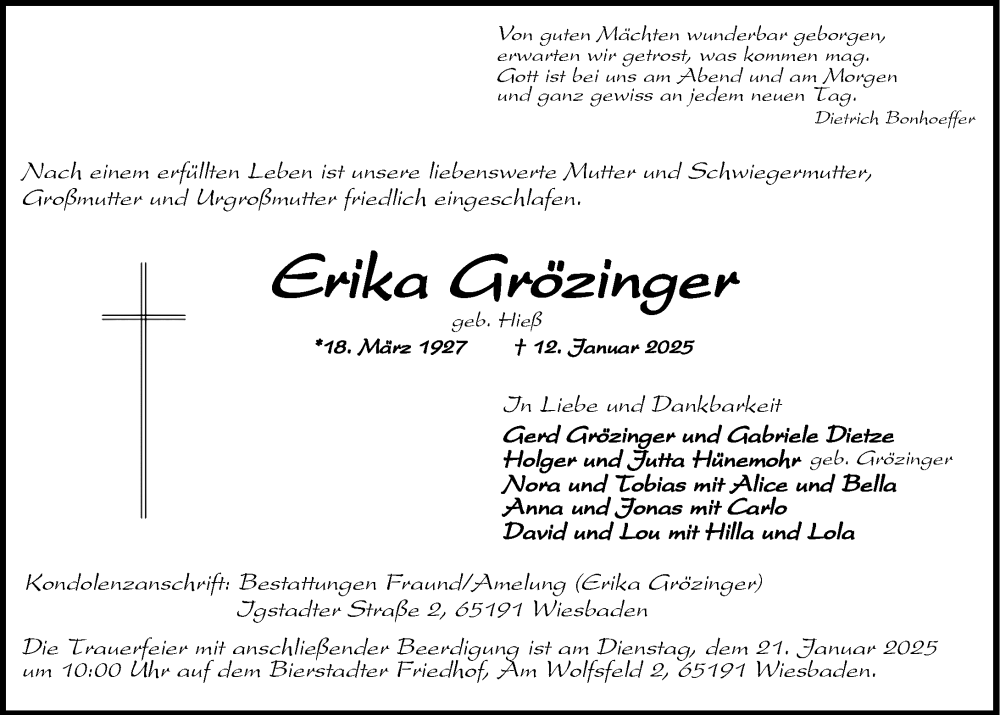 Hier finden Sie alle Traueranzeigen aus der Zeitung, die bisher für Lois Alzinger erschienen sind. Weitere Traueranzeigen, die in der Zeitung erscheinen, werden hier ebenfalls aufgelistet