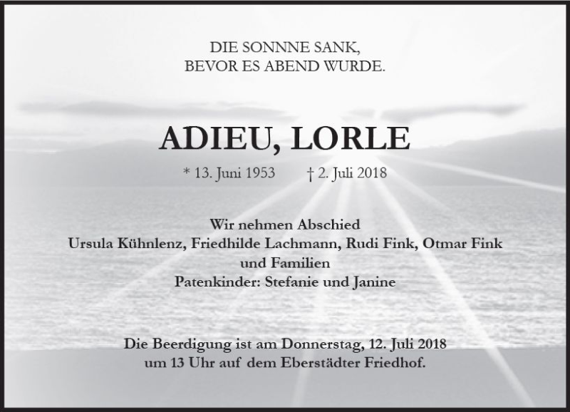 Hier finden Sie alle Traueranzeigen aus der Zeitung, die bisher für Lorle erschienen sind. Weitere Traueranzeigen, die in der Zeitung erscheinen, werden hier ebenfalls aufgelistet