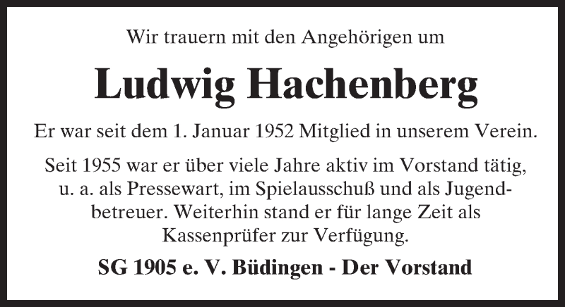 Hier finden Sie alle Traueranzeigen aus der Zeitung, die bisher für Ludwig Hachenberg erschienen sind. Weitere Traueranzeigen, die in der Zeitung erscheinen, werden hier ebenfalls aufgelistet