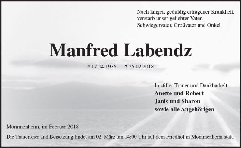 Hier finden Sie alle Traueranzeigen aus der Zeitung, die bisher für Manfred Labendz erschienen sind. Weitere Traueranzeigen, die in der Zeitung erscheinen, werden hier ebenfalls aufgelistet