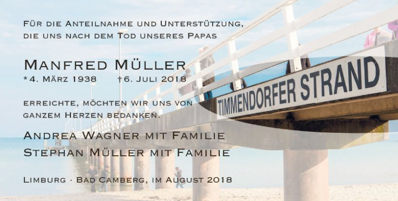 Hier finden Sie alle Traueranzeigen aus der Zeitung, die bisher für Manfred Müller erschienen sind. Weitere Traueranzeigen, die in der Zeitung erscheinen, werden hier ebenfalls aufgelistet