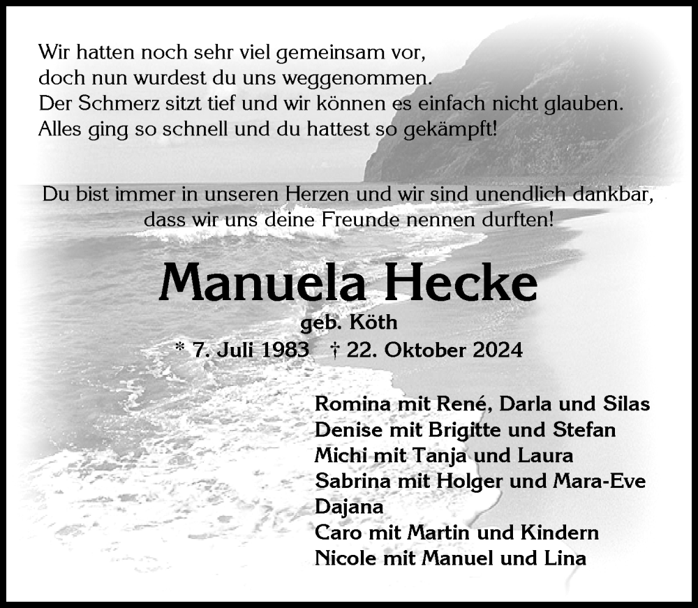 Hier finden Sie alle Traueranzeigen aus der Zeitung, die bisher für Manuela Hecke erschienen sind. Weitere Traueranzeigen, die in der Zeitung erscheinen, werden hier ebenfalls aufgelistet