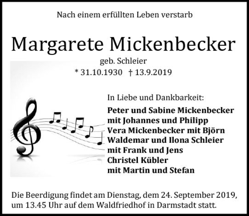 Hier finden Sie alle Traueranzeigen aus der Zeitung, die bisher für Margarete Mickenbecker erschienen sind. Weitere Traueranzeigen, die in der Zeitung erscheinen, werden hier ebenfalls aufgelistet