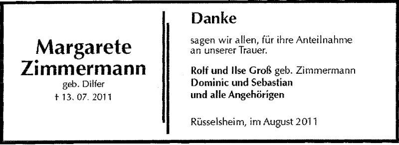 Hier finden Sie alle Traueranzeigen aus der Zeitung, die bisher für Margarete Zimmermann erschienen sind. Weitere Traueranzeigen, die in der Zeitung erscheinen, werden hier ebenfalls aufgelistet
