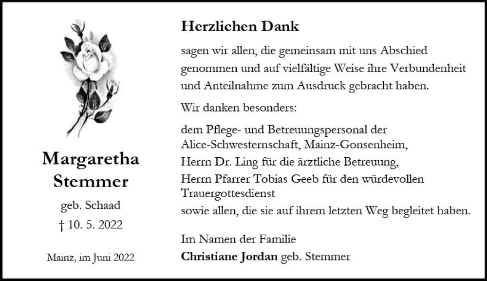 Hier finden Sie alle Traueranzeigen aus der Zeitung, die bisher für Margaretha Stemmer erschienen sind. Weitere Traueranzeigen, die in der Zeitung erscheinen, werden hier ebenfalls aufgelistet
