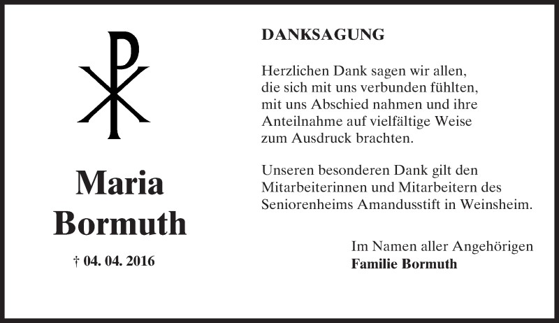 Hier finden Sie alle Traueranzeigen aus der Zeitung, die bisher für Maria Bormuth erschienen sind. Weitere Traueranzeigen, die in der Zeitung erscheinen, werden hier ebenfalls aufgelistet