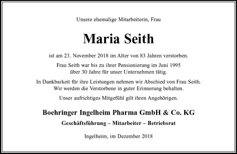 Hier finden Sie alle Traueranzeigen aus der Zeitung, die bisher für Maria Seith erschienen sind. Weitere Traueranzeigen, die in der Zeitung erscheinen, werden hier ebenfalls aufgelistet