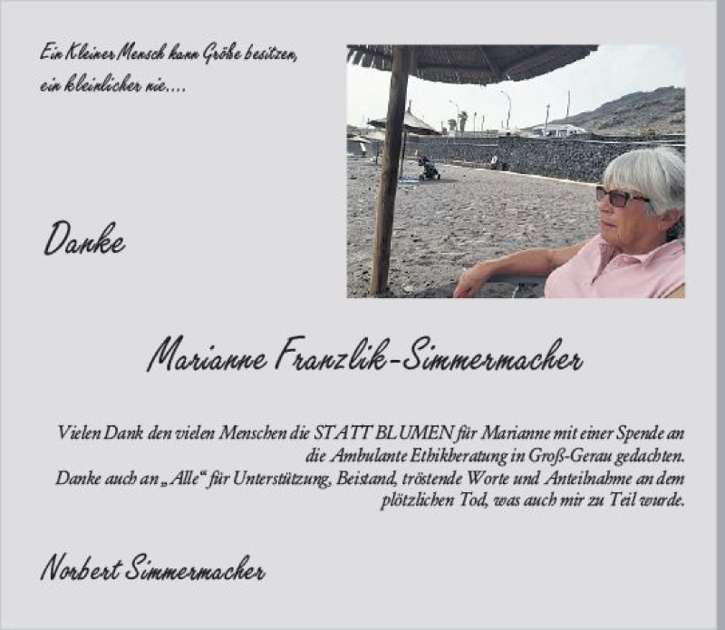 Hier finden Sie alle Traueranzeigen aus der Zeitung, die bisher für Marianne Franzlik-Simmermacher erschienen sind. Weitere Traueranzeigen, die in der Zeitung erscheinen, werden hier ebenfalls aufgelistet