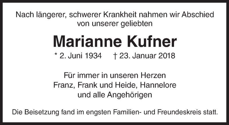 Hier finden Sie alle Traueranzeigen aus der Zeitung, die bisher für Marianne Kufner erschienen sind. Weitere Traueranzeigen, die in der Zeitung erscheinen, werden hier ebenfalls aufgelistet