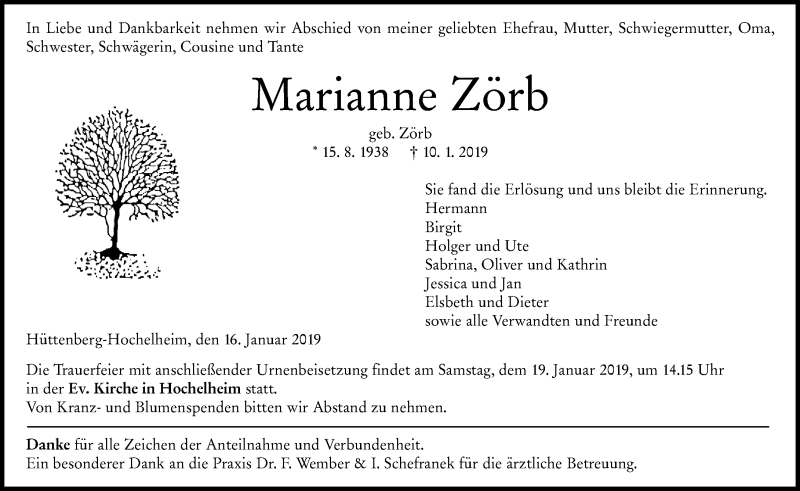 Hier finden Sie alle Traueranzeigen aus der Zeitung, die bisher für Marianne Zörb erschienen sind. Weitere Traueranzeigen, die in der Zeitung erscheinen, werden hier ebenfalls aufgelistet