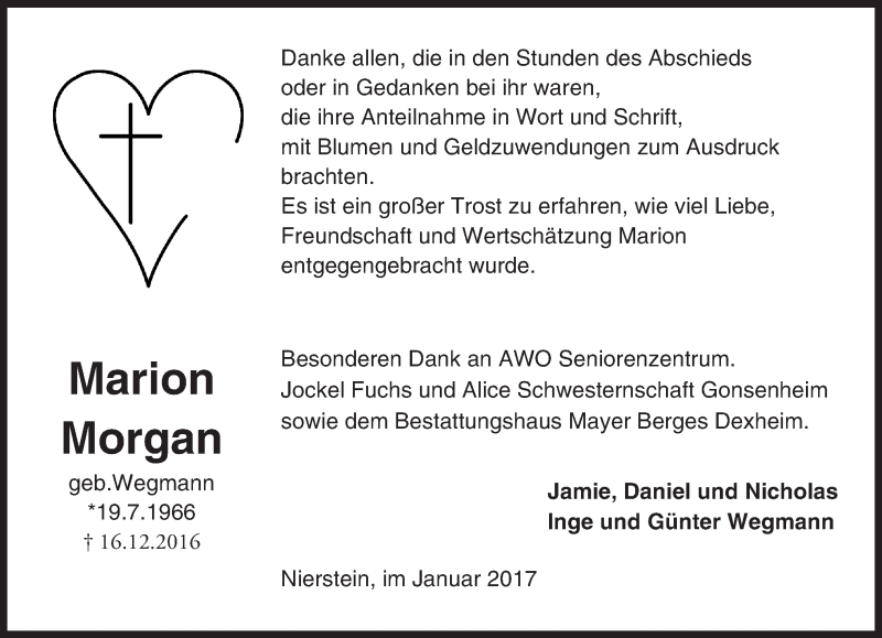 Hier finden Sie alle Traueranzeigen aus der Zeitung, die bisher für Marion Morgan erschienen sind. Weitere Traueranzeigen, die in der Zeitung erscheinen, werden hier ebenfalls aufgelistet