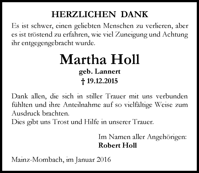 Hier finden Sie alle Traueranzeigen aus der Zeitung, die bisher für Martha Holl erschienen sind. Weitere Traueranzeigen, die in der Zeitung erscheinen, werden hier ebenfalls aufgelistet