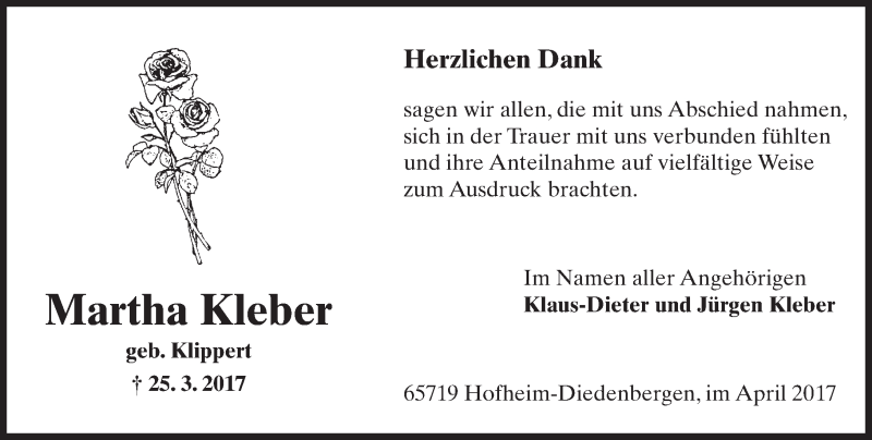 Hier finden Sie alle Traueranzeigen aus der Zeitung, die bisher für Martha Kleber erschienen sind. Weitere Traueranzeigen, die in der Zeitung erscheinen, werden hier ebenfalls aufgelistet