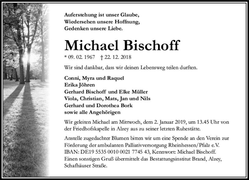 Hier finden Sie alle Traueranzeigen aus der Zeitung, die bisher für Michael Bischoff erschienen sind. Weitere Traueranzeigen, die in der Zeitung erscheinen, werden hier ebenfalls aufgelistet