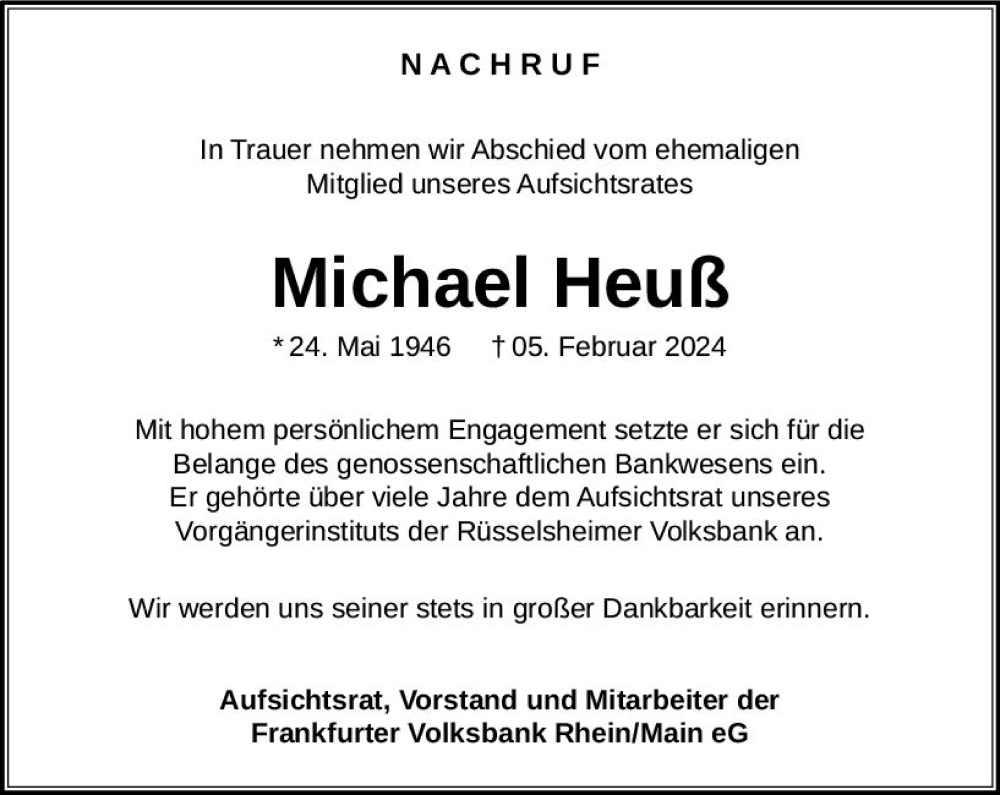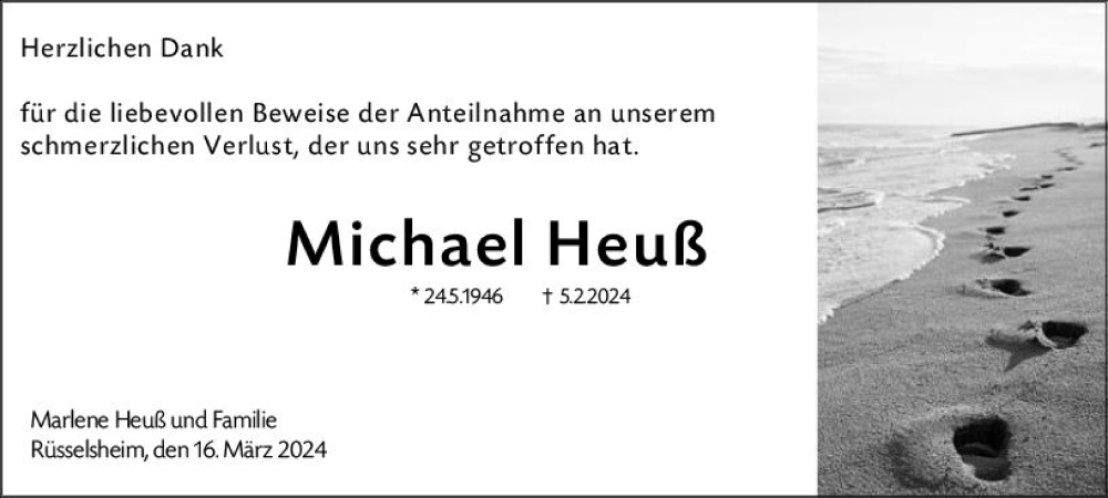Hier finden Sie alle Traueranzeigen aus der Zeitung, die bisher für Michael Heuß erschienen sind. Weitere Traueranzeigen, die in der Zeitung erscheinen, werden hier ebenfalls aufgelistet