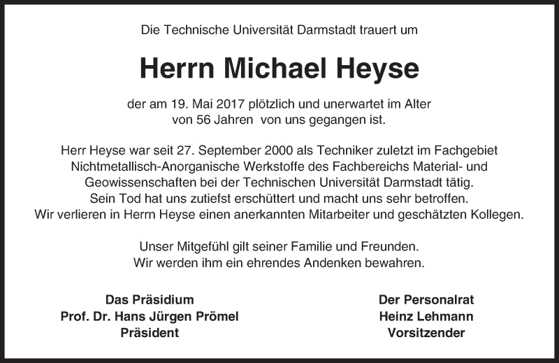 Hier finden Sie alle Traueranzeigen aus der Zeitung, die bisher für Michael Heyse erschienen sind. Weitere Traueranzeigen, die in der Zeitung erscheinen, werden hier ebenfalls aufgelistet